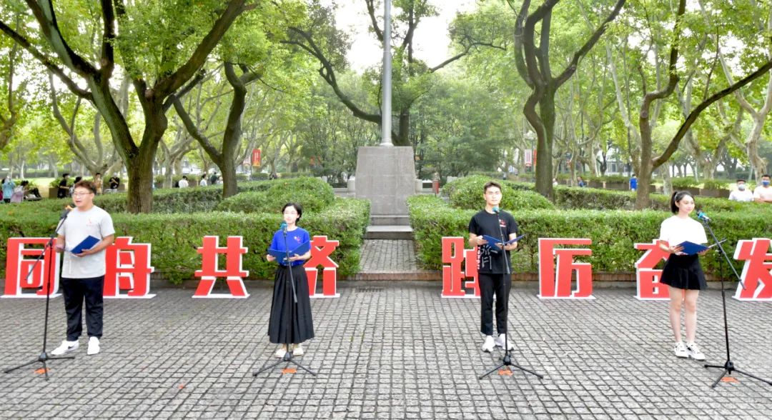 学生代表在国旗下激昂演讲,号召同学们弘扬爱国主义精神,践行新时代同济文化,矢志奋斗,争创“一流”,积极作答新时代新命题,以实际行动迎接党的二十大胜利召开。