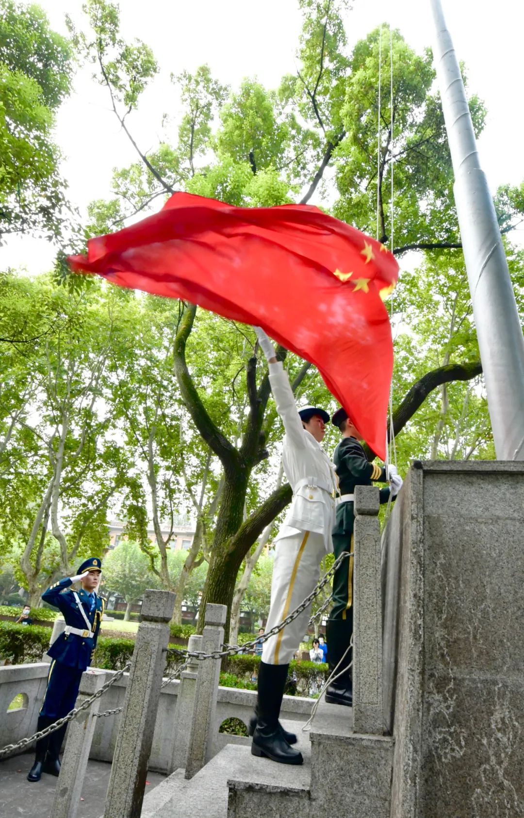 上午7时30分许,学校国旗护卫队迎着朝阳,神情庄重,迈着整齐矫健的步伐,将鲜艳的五星红旗护送至升旗台。伴随着庄严的国歌声,五星红旗冉冉升起,在同济校园迎风飘扬。全体师生肃立,向国旗行注目礼,齐声高唱中华人民共和国国歌,昂扬的歌声响彻校园,赤诚的爱国情怀在师生心中澎湃。