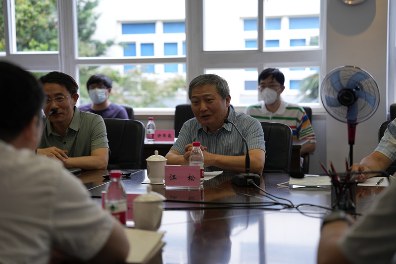随后,江松院士与同济大学相关学科的学科带头人、青年科研骨干共同座谈。副校长童小华出席会议并向江松院士来校指导表示欢迎和感谢。数学科学学院、物理科学与工程学院、电子与信息工程学院、航空航天与力学学院等学院负责人、专家教授、青年教师参加了会议。