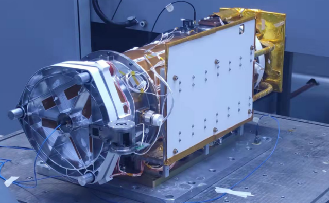 图:46.5 nm极紫外太阳成像仪(箭头所示)在卫星平台上的图片