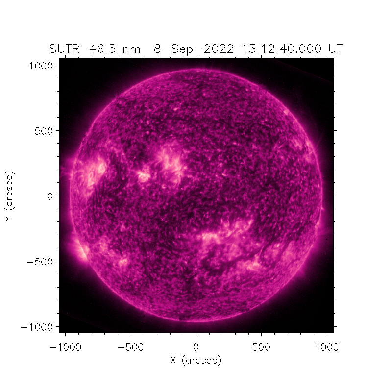 近日,中科院空间新技术试验卫星上搭载、由同济大学负责主体研制的46.5nm极紫外太阳成像仪(Solar Upper Transition Region Imager,简称“SUTRI”)顺利开机,成功获得首批太阳过渡区(太阳色球与日冕之间的层次)动态成像观测数据,并捕获到近期太阳上的一些活动现象。此次观测也是继1973年美国天空实验室(Skylab)上的无缝光谱仪拍摄全日面Ne VII 46.5nm图像后,人类近半个世纪来首次在46.5 nm波段拍摄到的太阳的完整图像。