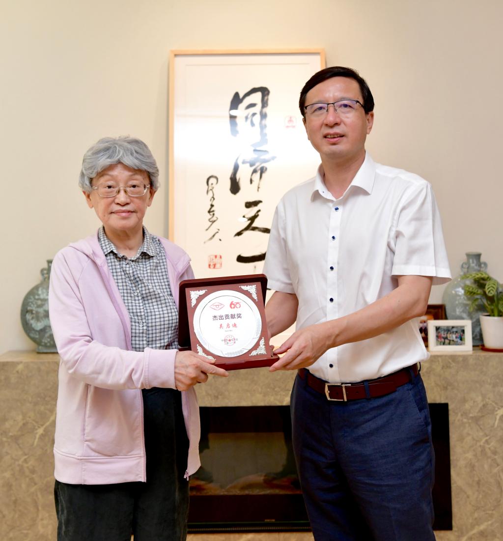 受中国自动化学会委托,同济大学校长陈杰在会前向吴启迪教授颁发了中国自动化学会六十周年杰出贡献奖奖牌。