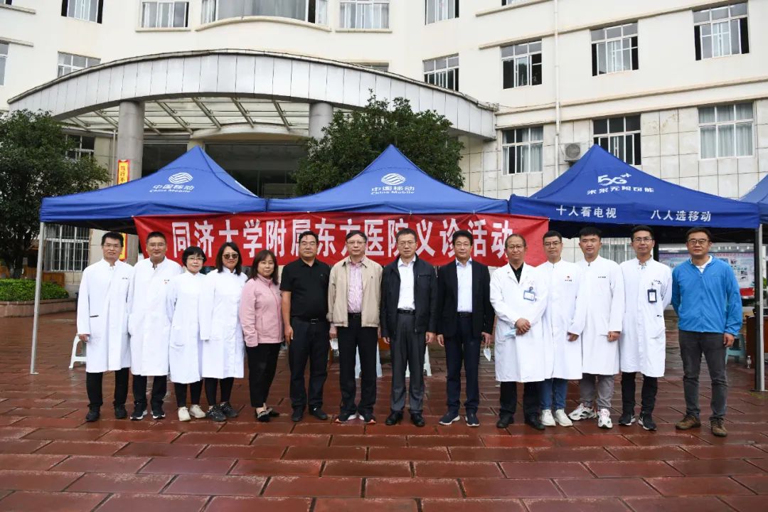 在云龙县人民医院“ 同济·云龙医疗周”活动现场,方守恩慰问了附属东方医院的医疗队员。本次医疗周,由附属东方医院党委书记李钦传带队,泌尿外科、神经内科、关节与骨病科、医学影像科、呼吸内科、口腔科7个科室的8位医师在云龙开展集中义诊,为当地百姓带去优质医疗服务的同时,还为基层医护人员开展专业诊疗培训。