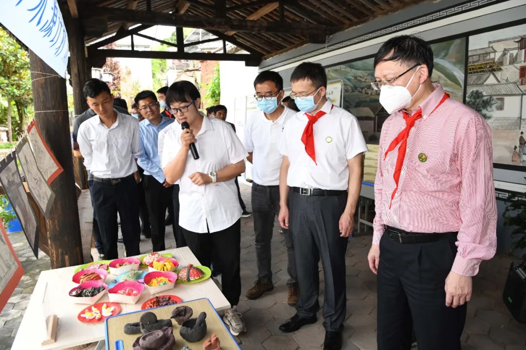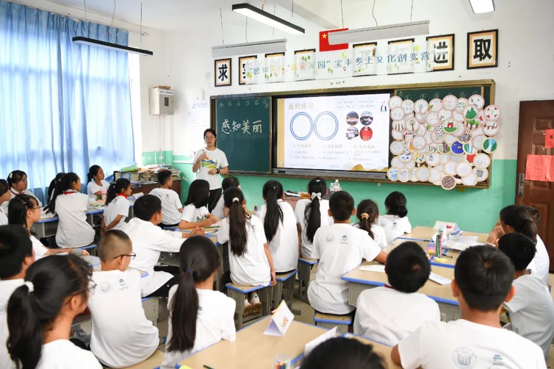 随后,调研团一行观摩了同济大学美丽乡愁团队讲授的“我绘我家乡”乡土美育示范课。当天,由美丽乡愁团队指导在地教师开展的“五感识家乡”乡土文化共创营也已正式开营。当地教师带领学生从视觉发现家乡的景观之美,从听觉捕捉家乡的自然与人文之声,从味觉寻觅家乡的地道风味,从触觉感受家乡风物的肌理,从嗅觉感知古村的书香气息。2021年起,在 “乡土教育水源计划”的支持下,依托同济大学乡土教育示范校的建设,团队已培育来自10所学校的15个在地乡土教育项目,逐步引导当地教师、青少年、返乡大学生成为乡土教育的推动者、实践者和主导者。