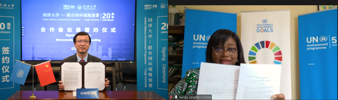在同济大学与联合国环境规划署携手走过20年合作历程之际,4月28日下午,双方新一轮合作备忘录签约仪式以线上线下方式隆重举行。