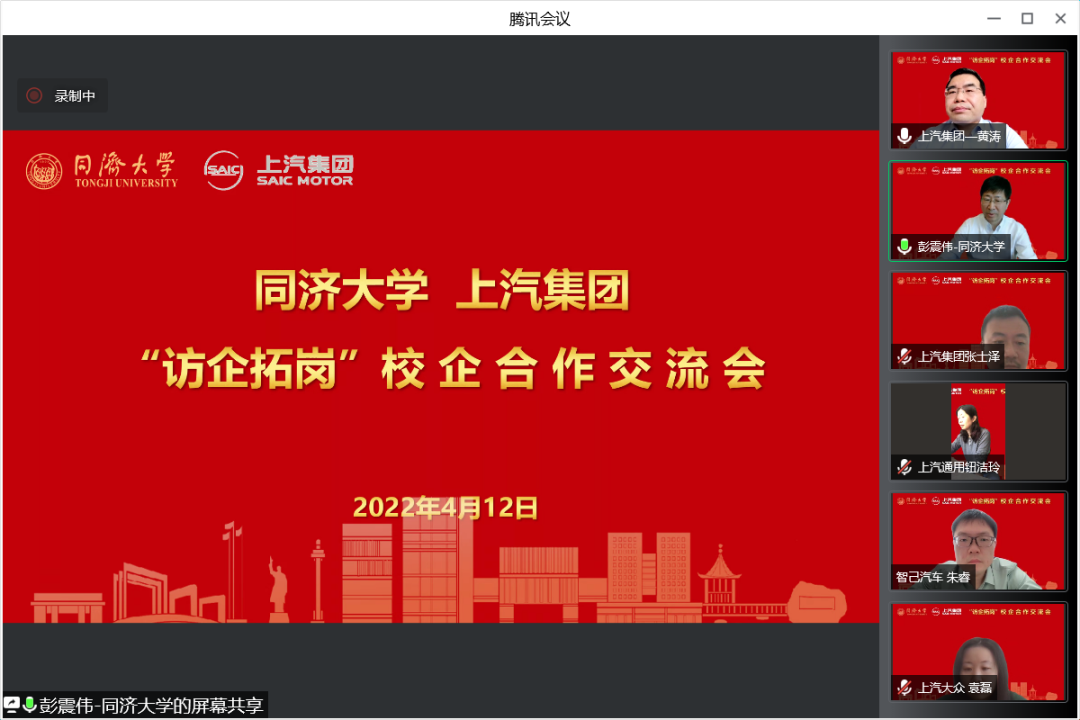 4月12日、13日,两场“访企拓岗”校企合作交流会线上举行,同济大学党委副书记彭震伟分别与上汽集团、华为公司人力资源部负责人共话校企深化合作前景,他表示,学校愿为企业高质量发展持续输送更多青年才俊。