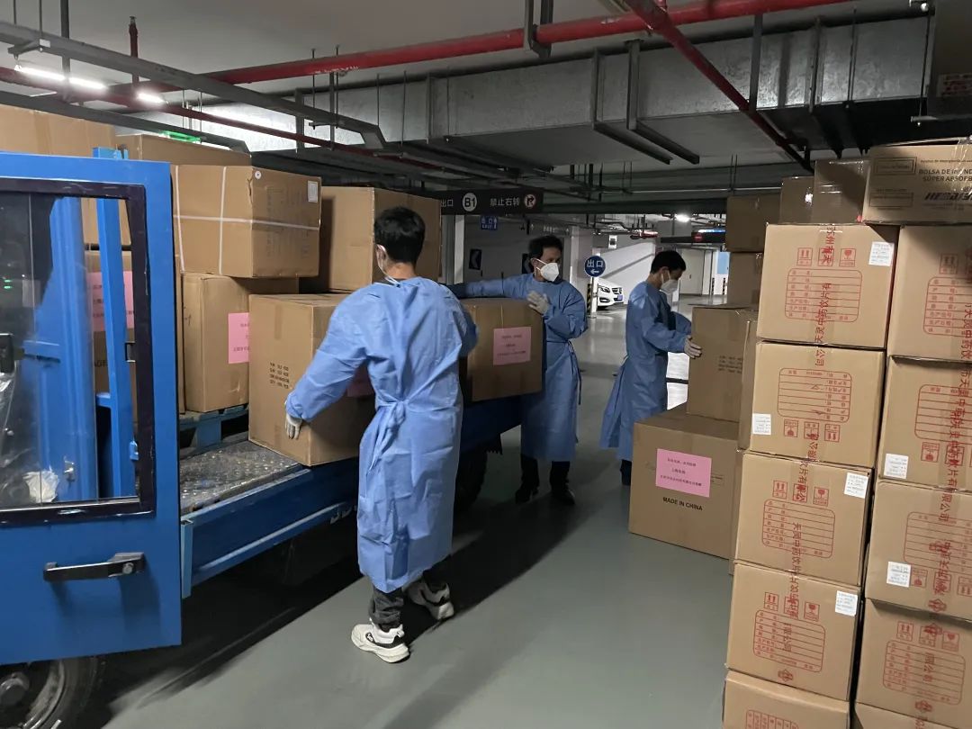 随着一批批物资进校,封控中的校园如何打通“最后一公里”?为解决当前运力不足难题,学校紧急从部分单位抽调人手,组建“物资收发保障组”,统筹对进校物资的接收、搬运、发放、配送等工作,并号召驻守校园的教师们积极投身志愿服务。无论是物资卸货,还是物资分发、送货到楼,处处可见一个个同济人冲锋在前、奔忙不歇的动人身影。