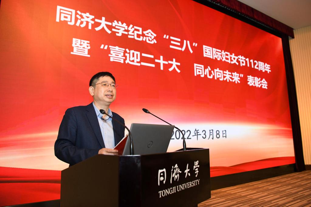 3月8日上午,我校纪念“三八”国际妇女节112周年暨“喜迎二十大 同心向未来”表彰会在四平路校区举行,表彰获得各级荣誉的先进个人和集体。常务副校长吕培明、校党委副书记吴广明出席表彰会。先进个人和先进集体获得者、各单位妇女干部、妇女工作分管领导及有关职能部门负责人代表参会。表彰会采用线上线下相结合的方式举行。