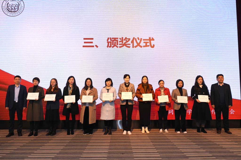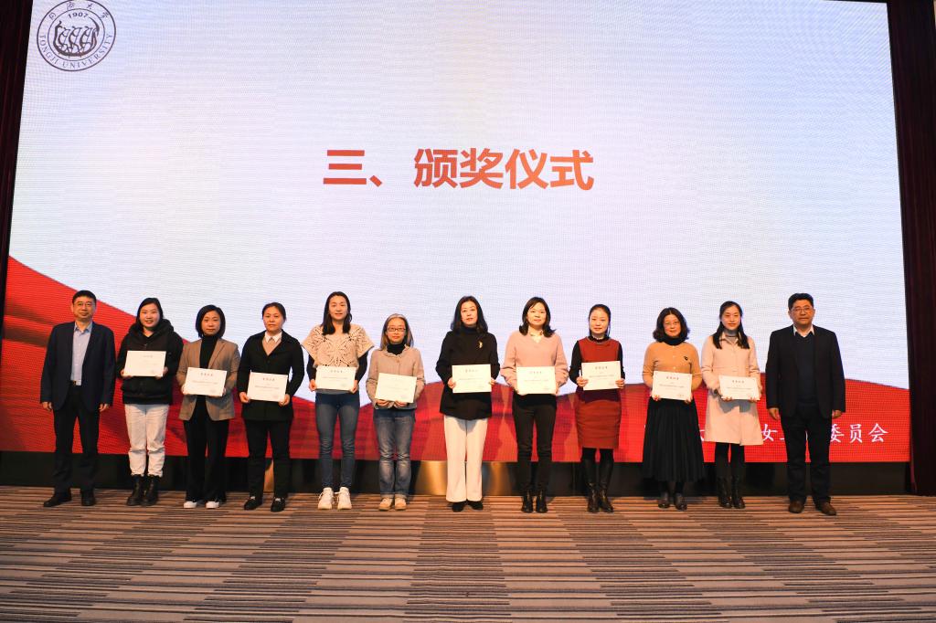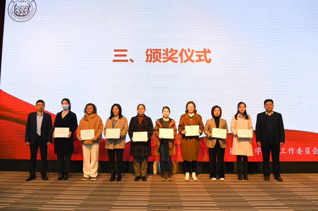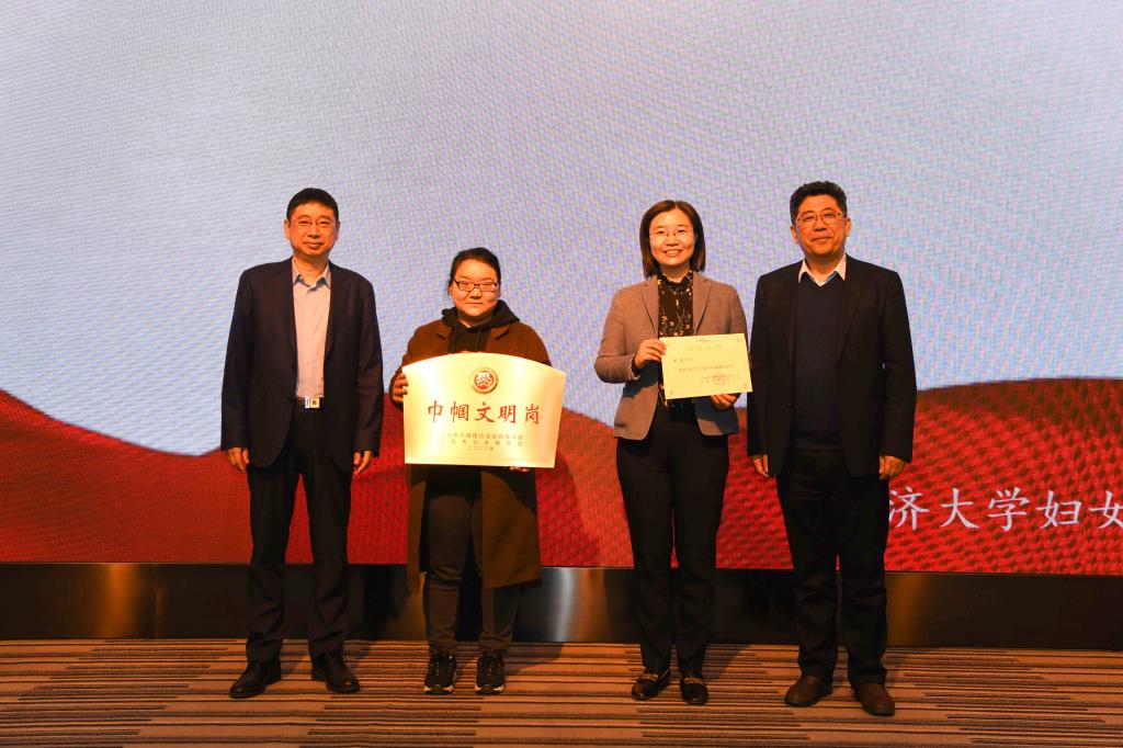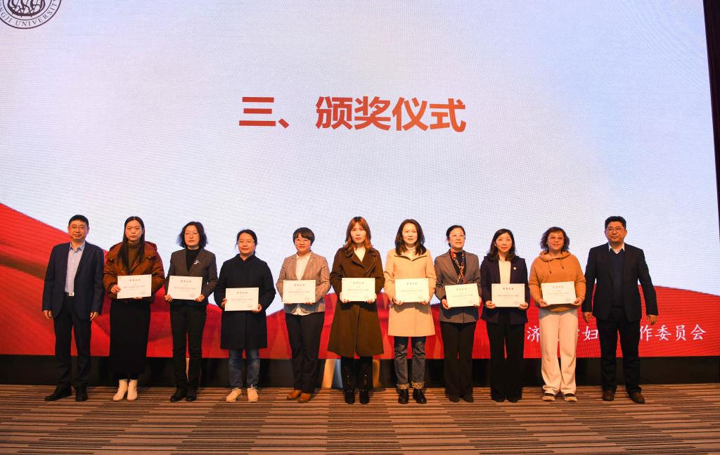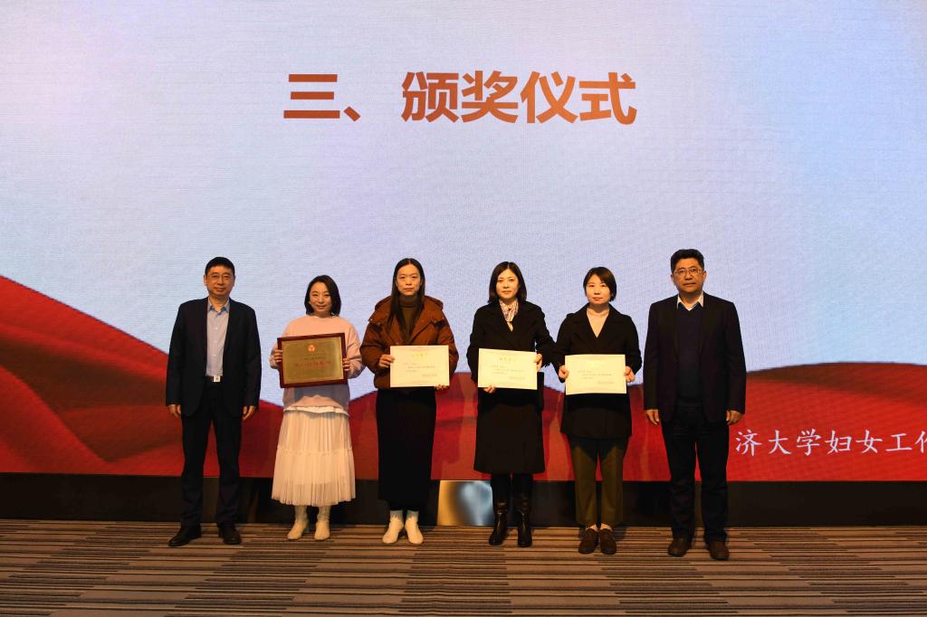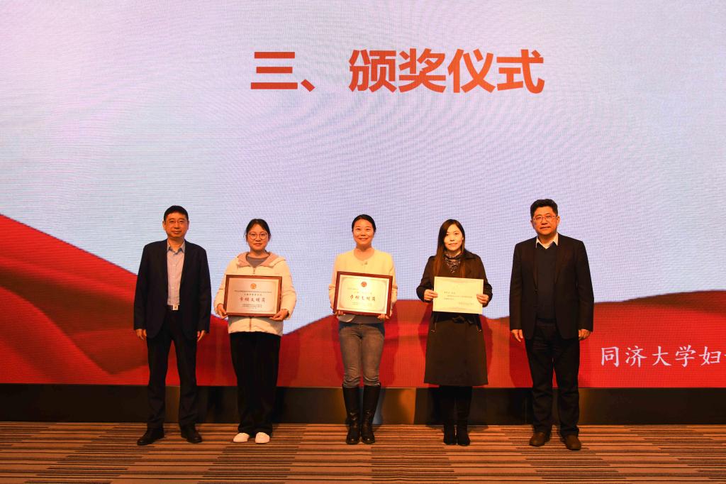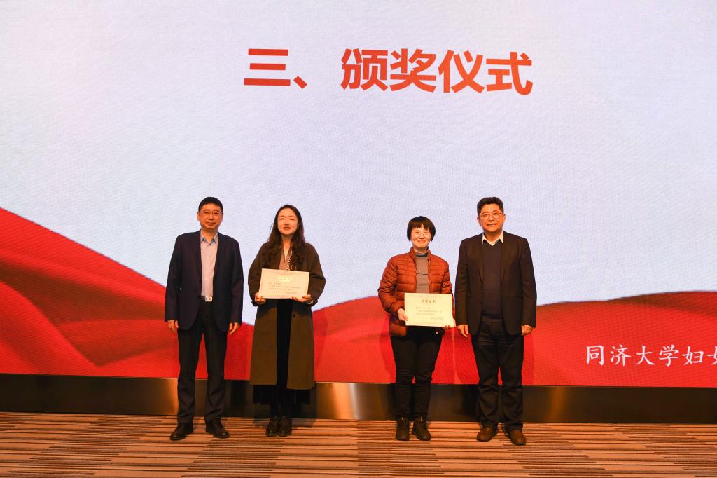 我校多位个人和多个集体荣获了各级各类荣誉:附属杨浦医院援鄂医疗队护理组被评为全国五一巾帼标兵岗;航空航天与力学学院李岩教授被评为上海市巾帼创新领军人物;附属第十人民医院范理宏被评为上海市三八红旗手标兵;生命科学与技术学院高亚威教授被评为2021年度上海市巾帼创新新秀、上海市三八红旗手,土木工程学院张冬梅教授、陈之毅教授分别被评为2020年度和2021年度上海市三八红旗手,医学院成昱教授、附属同济医院于斌、附属第十人民医院申远、附属东方医院江华、附属第一妇婴保健院孙路明、附属皮肤病医院史玉玲被评为上海市巾帼建功标兵,图书馆嘉定校区读者服务部、附属第十人民医院麻醉科、附属上海市肺科医院病理科、附属第一妇婴保健院妇科肿瘤(6A)病区、附属杨浦医院神经内科、附属养志康复医院社会工作部被评为上海市巾帼文明岗;环境科学与工程学院王亚宜教授、航空航天与力学学院王华宁教授、电子与信息工程学院刘成菊教授被评为上海市教育系统三八红旗手,艺术与传媒学院音乐与表演系被评为上海市教育系统三八红旗集体,同济大学国家海底科学观测系统项目办公室综合事务部、新生院被评为上海市教育系统巾帼文明岗,人文学院解学芳教授被评为上海市教育系统巾帼建功标兵,建筑与城市规划学院王兰、刘刚教授荣获2021年度上海市教育系统第二届最美家庭、比翼双飞模范佳侣标兵,建筑与城市规划学院党委副书记唐育虹、资产与实验室管理处处长周晔荣获2021年度上海市教育系统第十三届比翼双飞模范佳侣提名。王穗辉等20位女教师被评为同济大学三八红旗手,党委统战部等10个集体被评为同济大学三八红旗集体,刘琳、范曹敏家庭等18个家庭被评为同济大学阖家齐飞模范家庭,潘柏夷等8位妇女工作干部被评为同济大学妇女工作先进个人,韩晶等20名青年女教师获得同济大学优秀青年女教师成才资助金项目资助。吕培明、吴广明共同为获奖个人和集体颁奖。