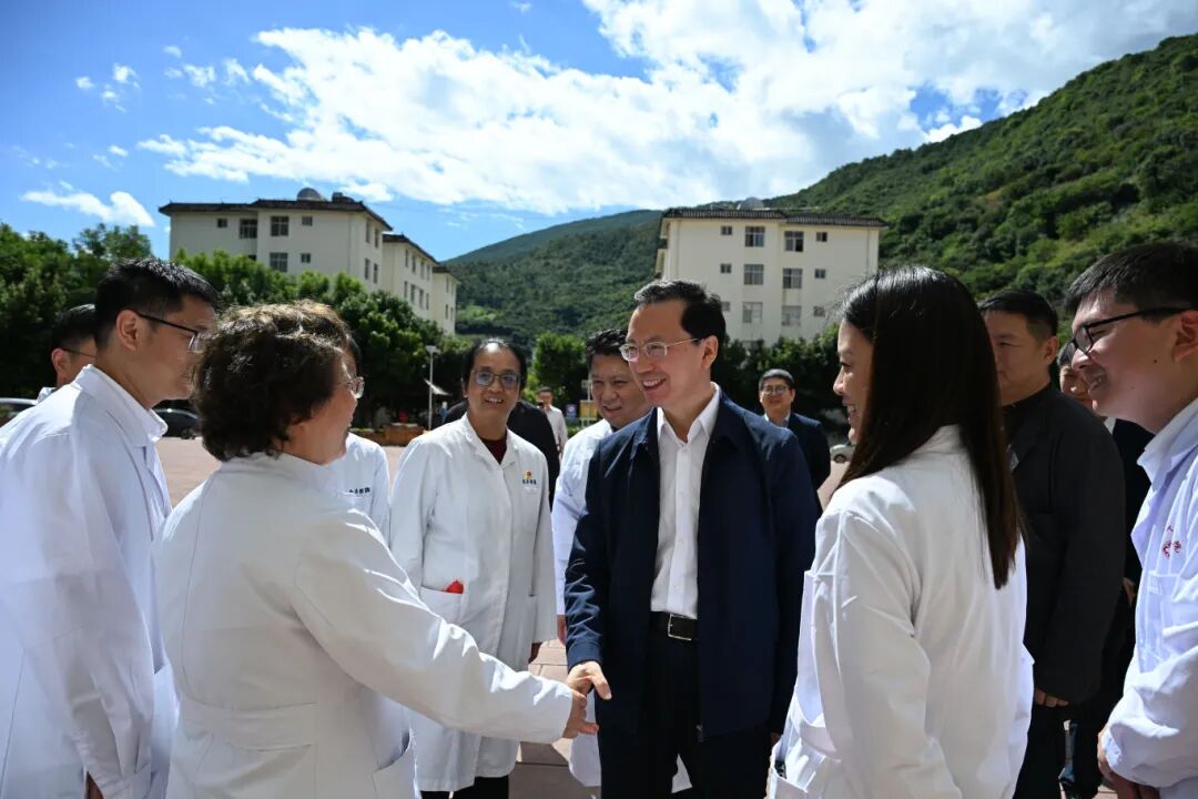 在云龙县人民医院,郑庆华慰问了正在此开展医疗服务的同济大学附属东方医院医疗队员。此次,附属东方医院派出医疗专家团队在当地开展云龙医疗周活动,涵盖近10个科室。