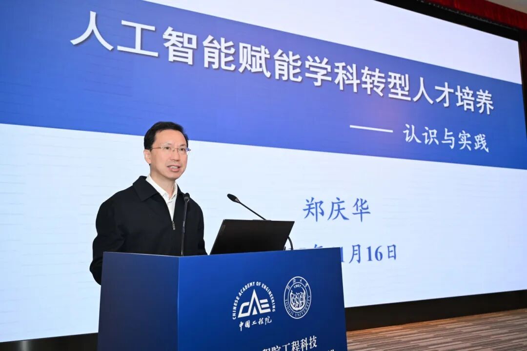 郑庆华作了题为《人工智能赋能学科转型人才培养——认识与实践》的报告。他表示,人工智能拓展了人类认识和改造世界的能力,正在重塑知识生产传播的格局,成为未来教育基础设施。当前,同济大学正以“数智化、绿色化、融合化”为指引,赋能学科转型、创新教育模式、提升治理能力,推进系列AI赋能的同济实践。