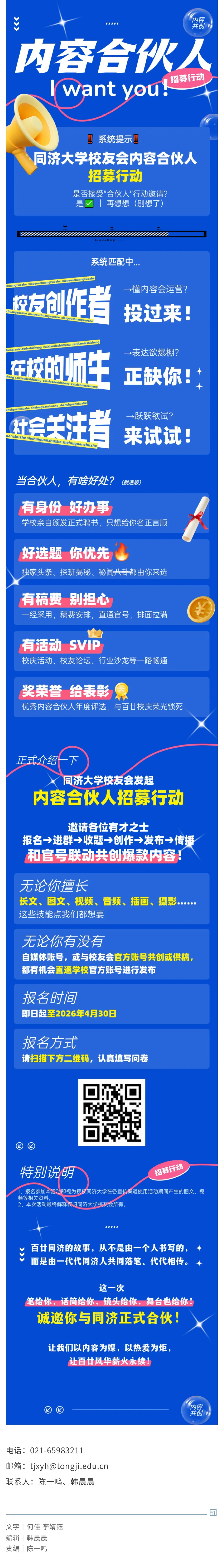 招募令丨同济大学120周年校庆内容合伙人,快来加入!