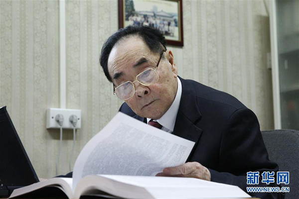 侯云德院士在办公室查阅资料