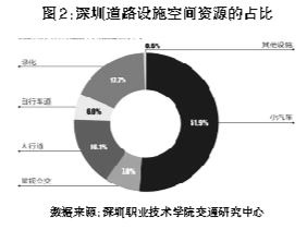 以深圳道路设施空间资源占比为例(见图2),其中小汽车占用的面积在一半以上,但是提供的出行比重只有不到30%,这是不公平的。所以,城市交通空间规划的基本原理应该是越有公共性越有集约性的,越应该排序在前面,在空间占用上具有优先级。例如,城市交通空间的排序应该是从地铁、公交车到自行车(包括共享单车)、分享小汽车和出租车,最后才是私家车。美国纽约最新的规划已经开始按照这个原则重新思考路权和停车权的问题。