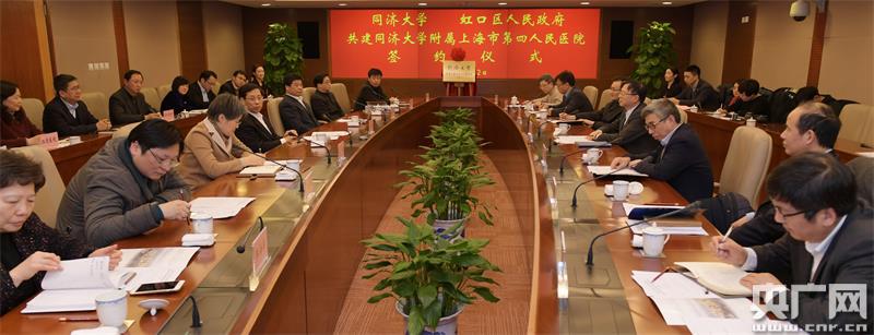 央广网上海2月2日消息(记者唐奇云)同济大学今天(2日)与上海市虹口区人民政府签署合作协议,区校将携手共建,用五年时间,将上海市第四人民医院由目前临床型医疗机构,建设成为集医疗、科研、教学功能为一体,具有三级医院服务能级的综合型大学附属医院。虹口区与同济大学、虹口区卫生和计划生育委员会与同济大学医学院分别签署共建协议书;同济大学附属上海市第四人民医院(筹)揭牌。