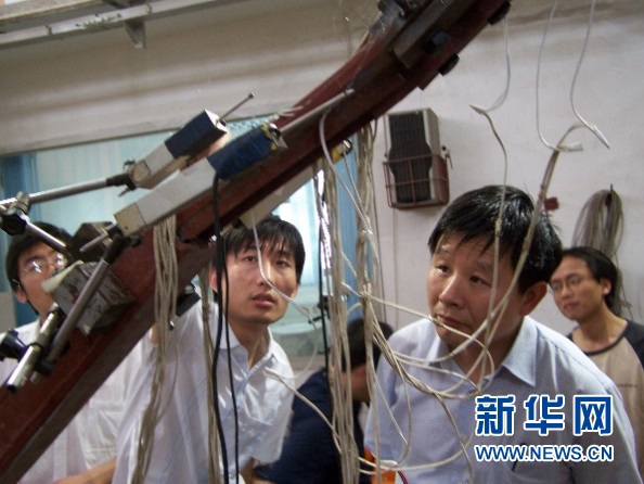 TJI型屈曲约束支撑研发试验(右一为李国强教授)