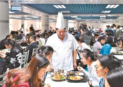 同济大学的大厨鲍士龙师傅询问同学们的意见