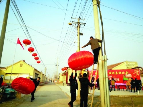 扇子舞《欢聚一堂》、歌曲《虫儿飞》、朗诵古诗四首、相声小品《恋爱操控师》、架子鼓+古筝……27个节目,两轮抽奖,现场游戏互动,今年大年初一在山东德州市滕庄村举行的第三届迎春联欢会历时近3个半小时,台上载歌载舞,台下掌声连连,几百名乡里乡亲现场围观。