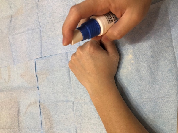 ① 适量造口粉洒于皮炎处,均匀涂抹,停留20-30秒后,清除多余的粉末;