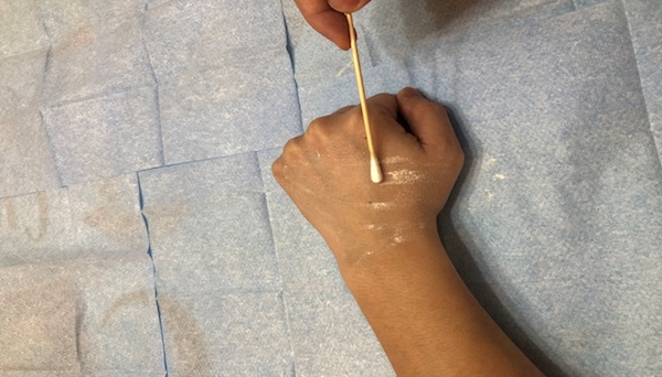 洒造口粉于皮炎处均匀涂抹