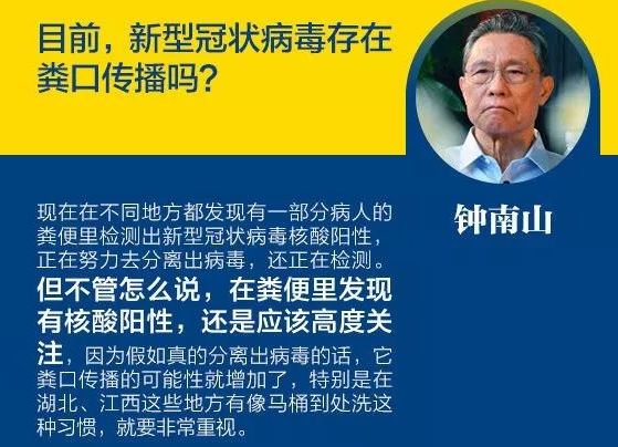 但是钟南山院士也说了,不管怎么说,粪便里发现核酸阳性,还是应该高度关注的。