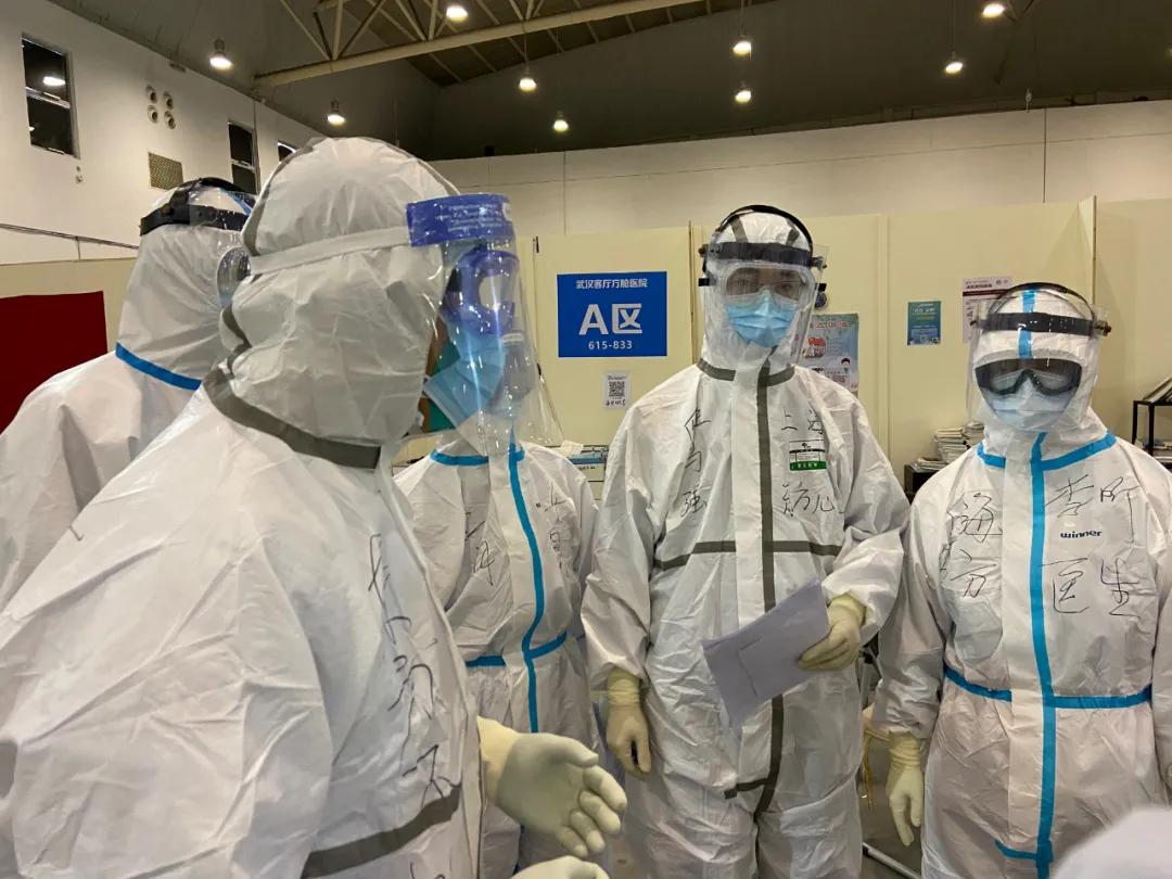 在东西湖区方舱医院里工作的东方医院国家紧急医学救援队队员们