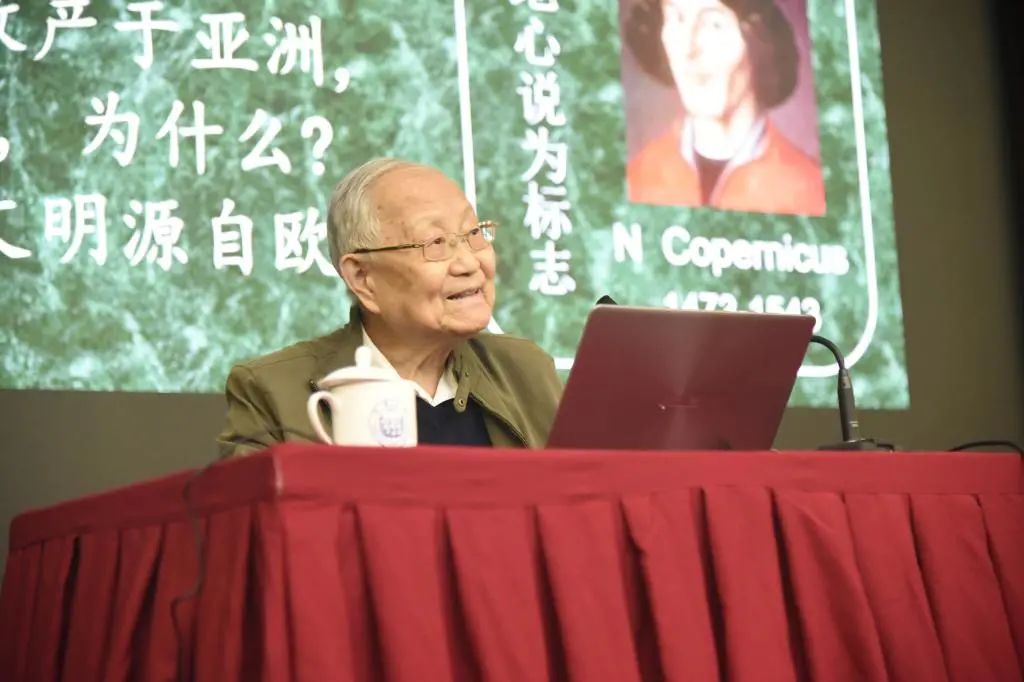 4月7日当晚,汪品先所讲课程为公共选修课“科学与文化”,讲课历时100分钟。该课自3月10日起开讲,每双周上课。这也是时隔4年,在系统性思考科学与文化关系的基础上,汪品先再度开讲这门课程。