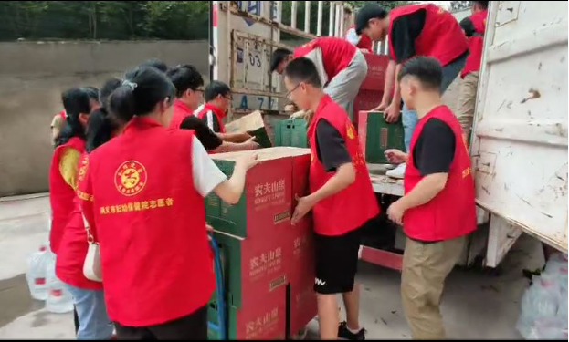 发放捐赠物资、