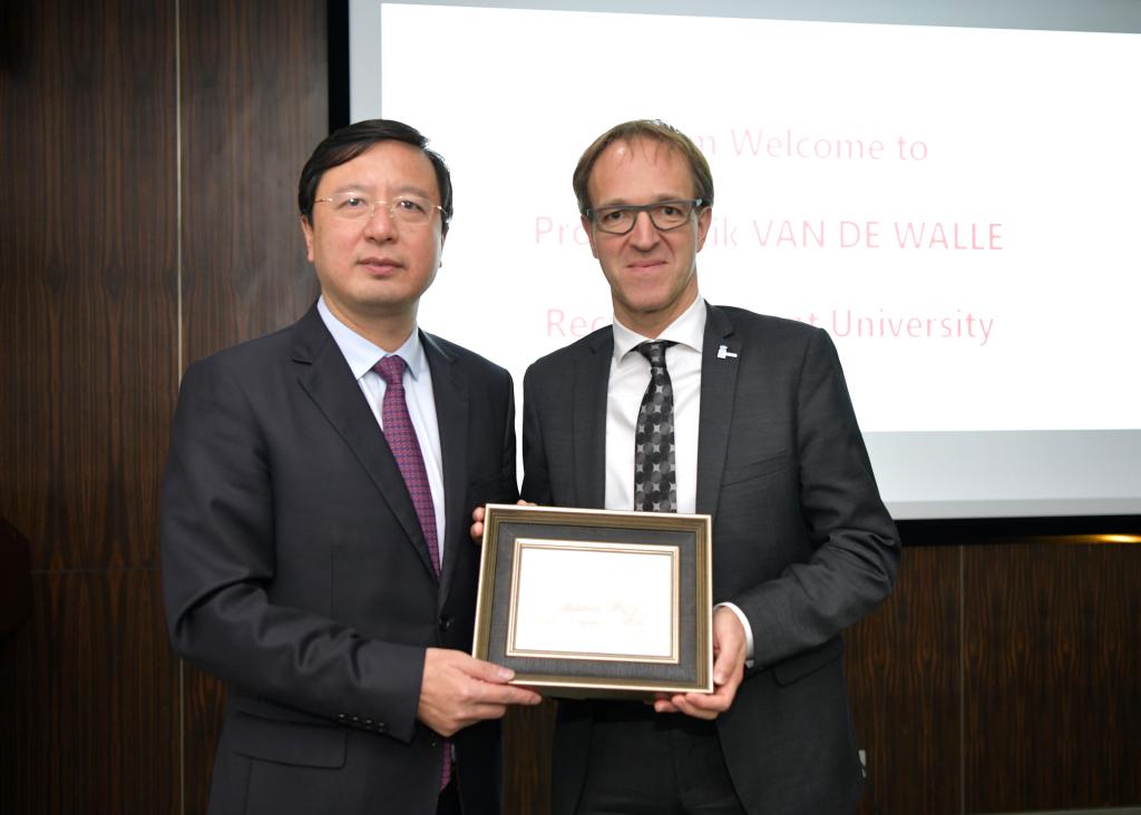 11月12日下午,校长陈杰在四平路校区逸夫楼会见比利时根特大学校长Rik VAN DE WALLE一行。