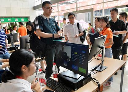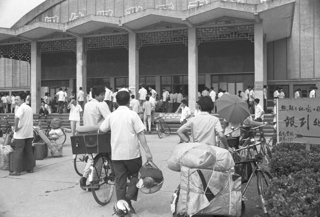 展览中,有上世纪80年代学生入学的场景图,照片中家长和学生用自行车运送被褥和生活用品到校报到。而如今,同济大学入学方式大变样,只需轻轻一扫,所有报到信息一应俱全,省去了大部分冗杂的报到程序。
