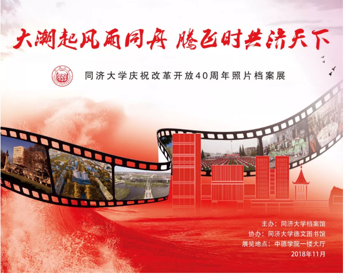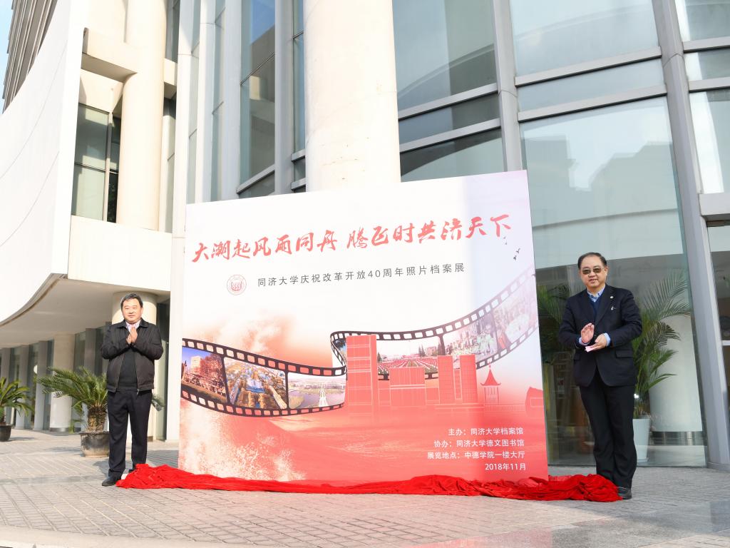 11月26日上午,“大潮起风雨同舟 腾飞时共济天下——庆祝改革开放40周年照片档案展”揭幕仪式在中德学院一楼大厅举行。同济大学档案馆从上万件馆藏照片中选出40张最具同济大学特色的照片档案珍品,绝大多数照片系首次公开展出。此次展览展现了同济大学在人才培养、科学研究、社会服务、文化传承创新和国际交流合作等方面的发展历程。我校副校长江波和学校宣传部负责人为展览揭幕。机关党委、图书馆、校工会、校团委、档案馆等单位负责人和学生代表出席。