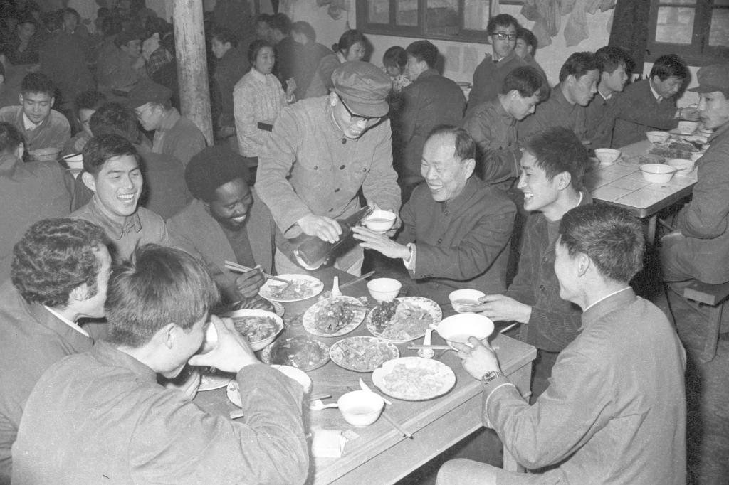 新春佳节,是我国最隆重的传统节日。1979年1月27日,李国豪校长(站立者右边者)与学生们共度除夕。师生同乐,同吃年夜饭的传统,一直延续至今。