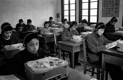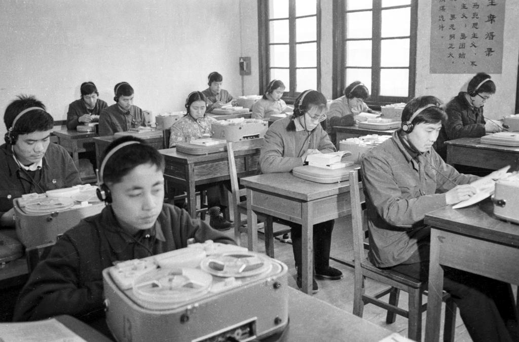 这两张体现学习方式变化的照片档案,描述了1979年同济大学德语班新生进行语音训练的情景。当时,磁带录放机是主要的语音学习的工具。时间飞逝,如今,同学们坐在先进的多媒体语音教室里学习。40年,变化的是学习方式,不变的是莘莘学子刻苦认真的学习热情。