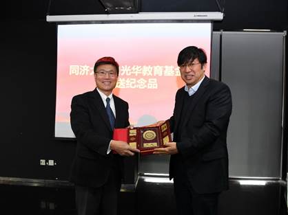 孙方霖感谢光华教育基金会多年来对同济大学教育事业的关心和支持,并向所有获得本年度光华奖学金的同学表示祝贺。他勉励同学们能继承和发扬奖学金背后所传递的奉献精神和社会担当,在学好专业知识的基础上,在德智体美劳各方面取得全面发展,将个人理想融入国家和民族的伟大梦想,不忘初心,砥砺前行。
