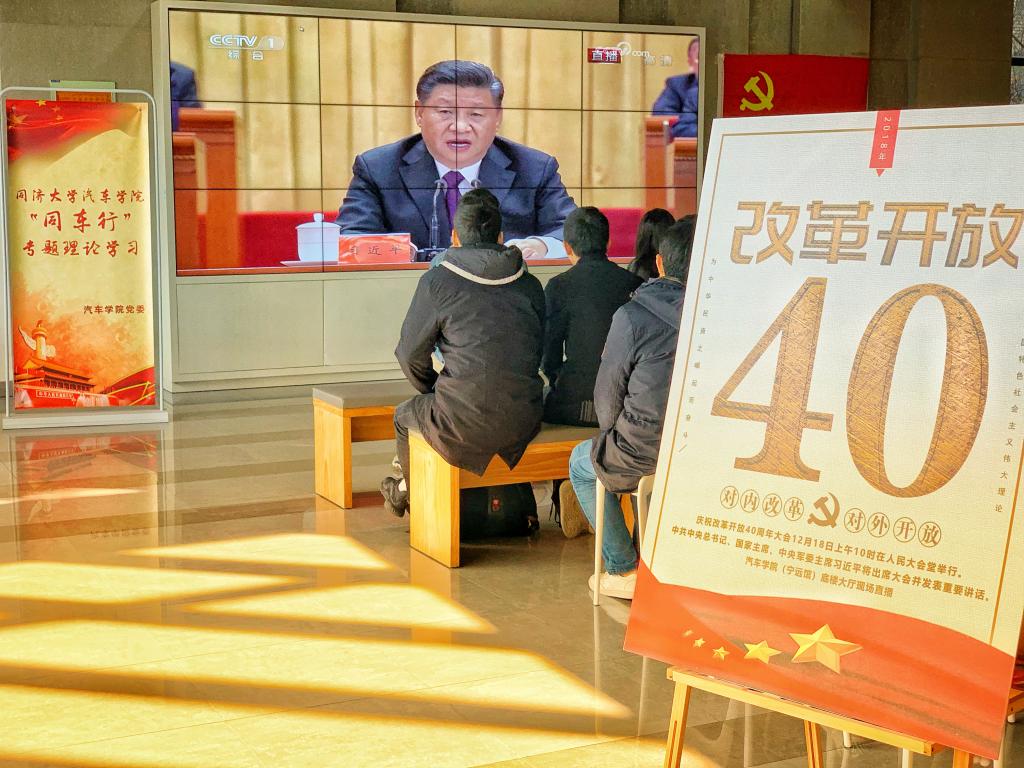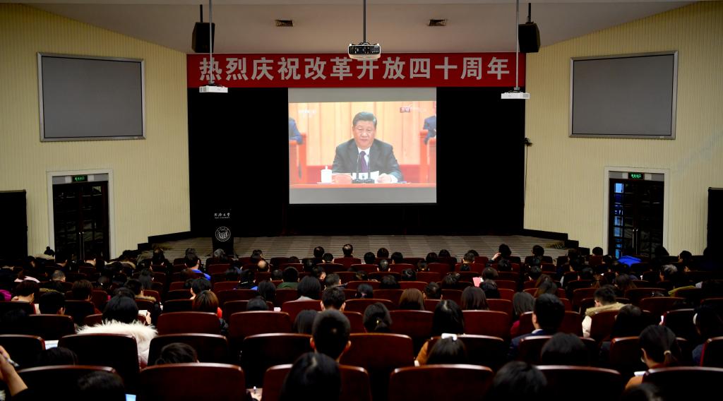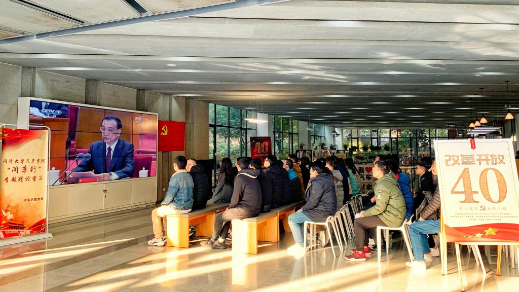 12月18日上午10时,庆祝改革开放40周年大会在北京隆重召开,中共中央总书记、国家主席、中央军委主席习近平出席大会并发表重要讲话。同济大学师生员工通过各种方式收看大会直播。四平路校区逸夫楼一楼报告厅座无虚席,学校党政领导与师生一同收看庆祝改革开放40周年大会。在学生社区活动室、党建中心,在各学院、教室、实验室,在大屏幕前,同济人踊跃观看。大会的召开,在全体同济人中引起强烈反响!