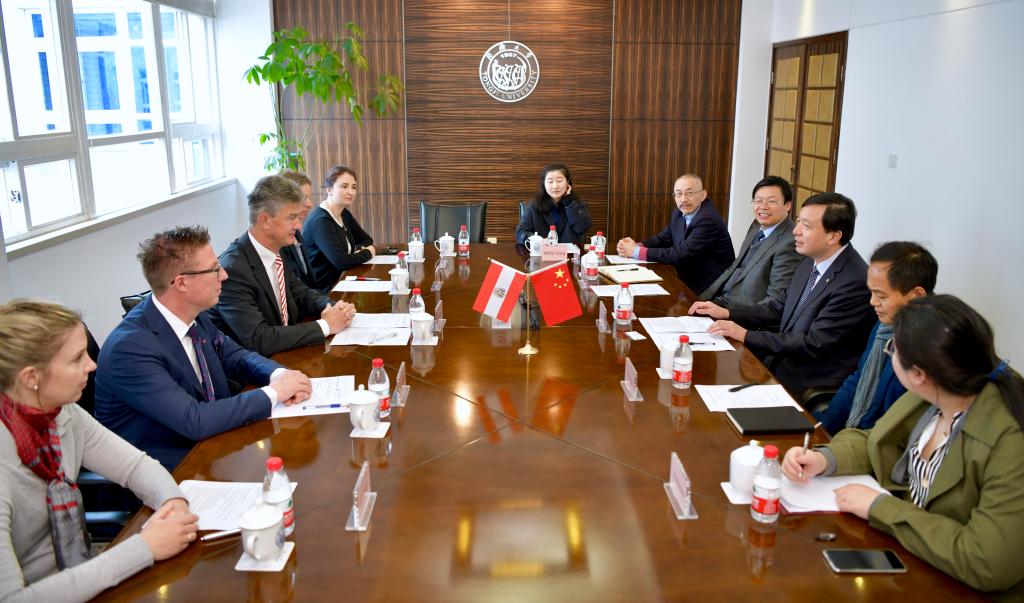 近日,奥地利格拉茨工业大学校长凯恩茨(Harald Kainz)教授及其代表团一行5人访问同济大学。校长陈杰于逸夫楼会见代表团,我校汽车学院、建筑与城市规划学院及外事办公室相关人员陪同会见。