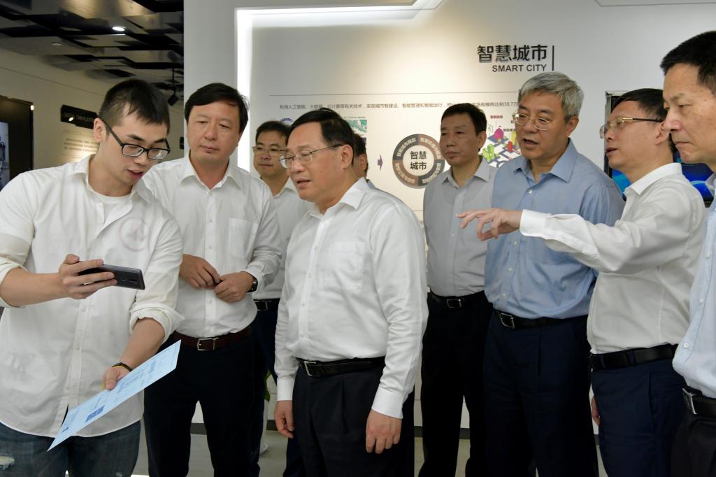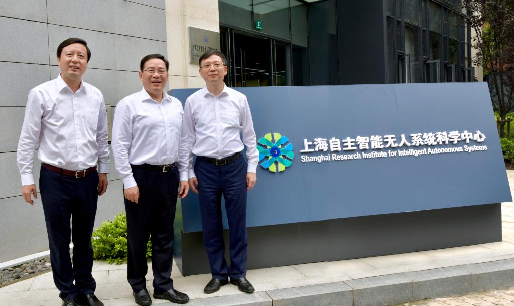 中共中央政治局委员、上海市委书记李强7月3日上午就推动贯彻落实十一届上海市委七次全会精神和《关于支持浦东新区改革开放再出发 实现新时代高质量发展的若干意见》,赴浦东新区进行专题调研。上海市委副书记尹弘参加调研。在张江人工智能岛,李强一行考察了依托我校建设的上海自主智能无人系统科学中心。