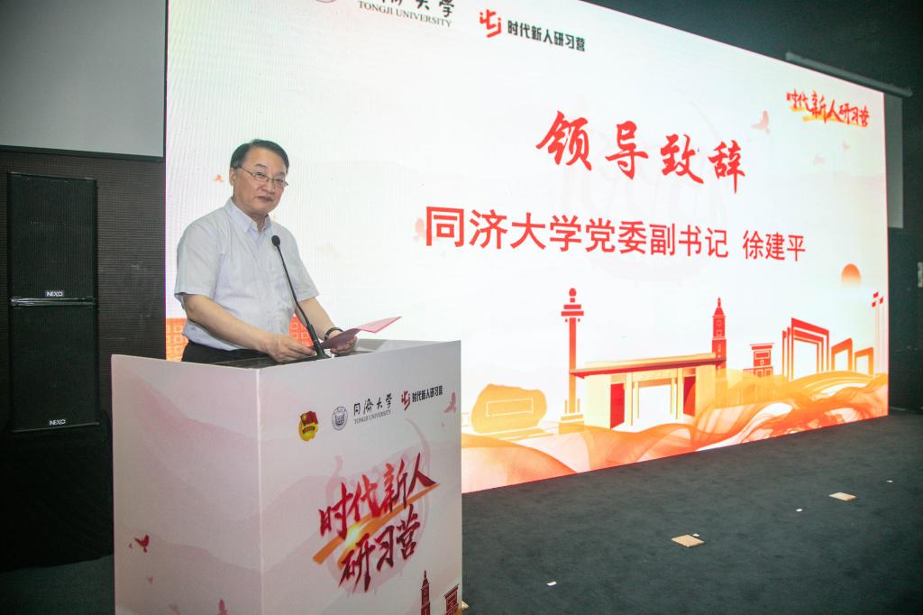 徐建平在致辞中寄语时代新人研习营营员在研习营中有所收获,能够勇于担当时代责任,永葆同济天下的家国情怀,能够积极开拓进取、勇葆敢为人先的创新精神,成长为有理想、有本领、有担当的时代新人,为中华民族的伟大复兴贡献同济人的青春力量。