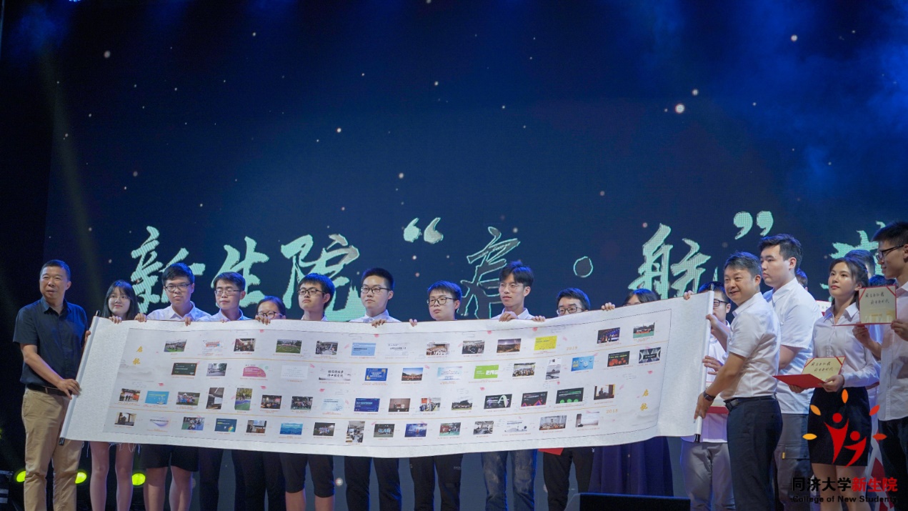 本次“启·航”典礼旨在搭建平台展示新生院学子成长风采,同时总结新生院一年以来的工作,表彰优秀、展望未来。为表达同学们对本年度辛勤付出的班主任们的感谢,本次“启·航”典礼特别颁发优秀班主任荣誉称号,同时对德、智、体、美、劳等方面表现优异的学生进行了表彰。刘润和黄一如代表学院为学生代表颁发纪念证书,见证新生院学子正式启航。学生代表则向学院赠送卷轴,卷轴记录了新生院学子2018-2019学年的成长轨迹,饱含了同学们对于学院这一年培养的感激和对学院未来发展的美好祝愿。两位新生院“大家长”也与学生代表共同按下启动按钮,见证新生院的正式启航。