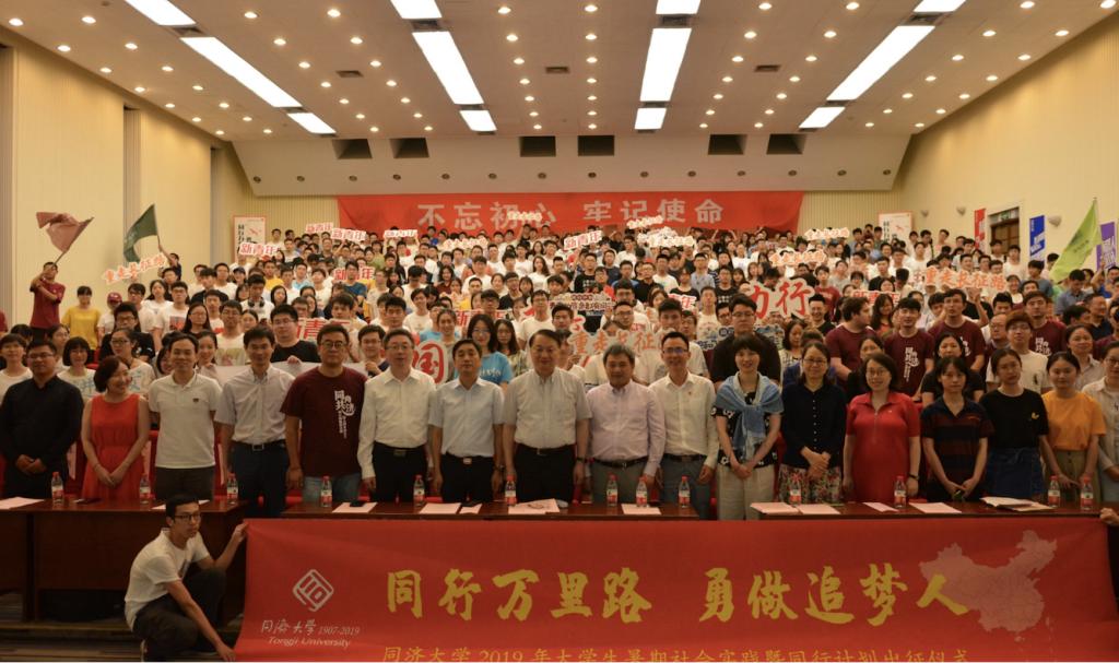 近日,“同行万里路,勇做追梦人”同济大学2019年暑期社会实践暨同行计划出征仪式在逸夫楼一楼报告厅举行。校党委副书记徐建平,党办、组织部、宣传部、本科生院、研究生院、校友总会、创业校友企业等相关单位负责人以及各院系领导、参与暑期实践的师生代表350人共同参加了出征仪式。