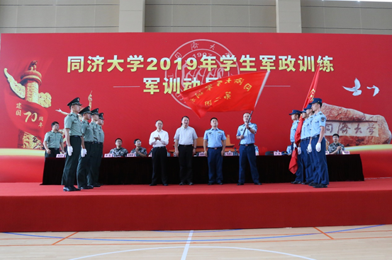在四平路校区学生军政训练动员大会中,全体人员奏唱《中华人民共和国国歌》之后,徐建平郑重宣布军训开始。军训旅副政委刘润宣读了军训旅营级以上干部名单。由徐建平和梅俊旅长一起完成授旗。在嘉定校区,冯身洪宣布2019年学生集中军政训练正式开始。同济大学学研工部副部长、军训旅政治部主任徐迅宣读了本次军训旅干部名单,徐建平、冯身洪和梅俊一起完成授旗。