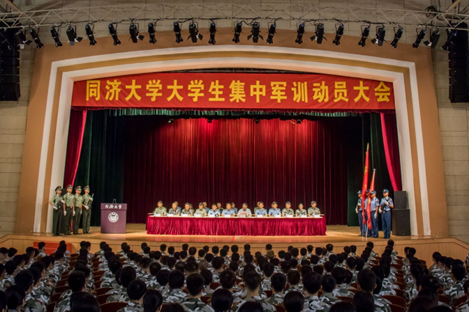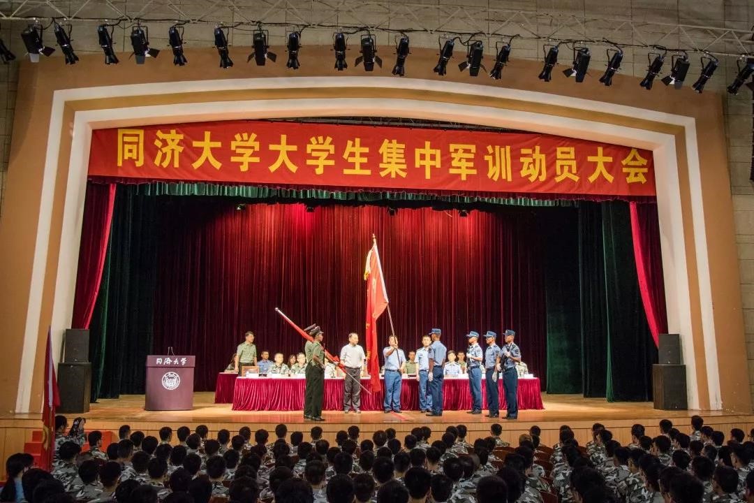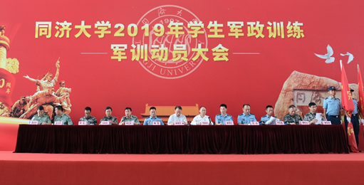 2019年8月18日上午,同济大学学生军政训练动员大会分别在四平路校区大礼堂和嘉定校区体育中心举行。同济大学党委副书记、同济大学军训工作领导小组组长徐建平,同济大学党委副书记冯身洪,同济大学军训旅旅长梅俊,军训旅参谋长易招文,军训旅一团团长田野,军训旅一团参谋长陈磊,军训旅二团团长刘冰,军训旅二团参谋长芦宇豪等出席会议。承训部队教官、同济大学退伍大学生教官、随训教师和全体参训学生到场参会。