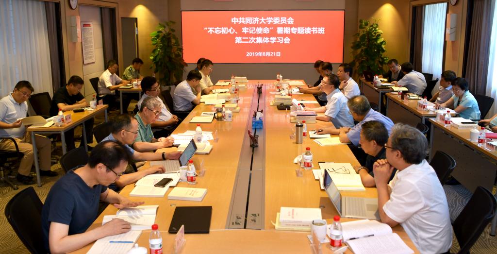 校党委“不忘初心、牢记使命”暑期专题读书班第二次集体学习会于8月21日全天在四平路校区举行。校党委书记方守恩、校长陈杰等校领导班子成员和校党委理论学习中心组其他成员参加。学习会由方守恩主持。教育部高校党建工作联络员、上海财经大学原党委副书记刘永章出席。