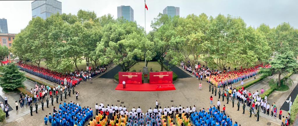 嘉定校区也举行了升旗仪式,向新中国70华诞献上最美好的祝福。