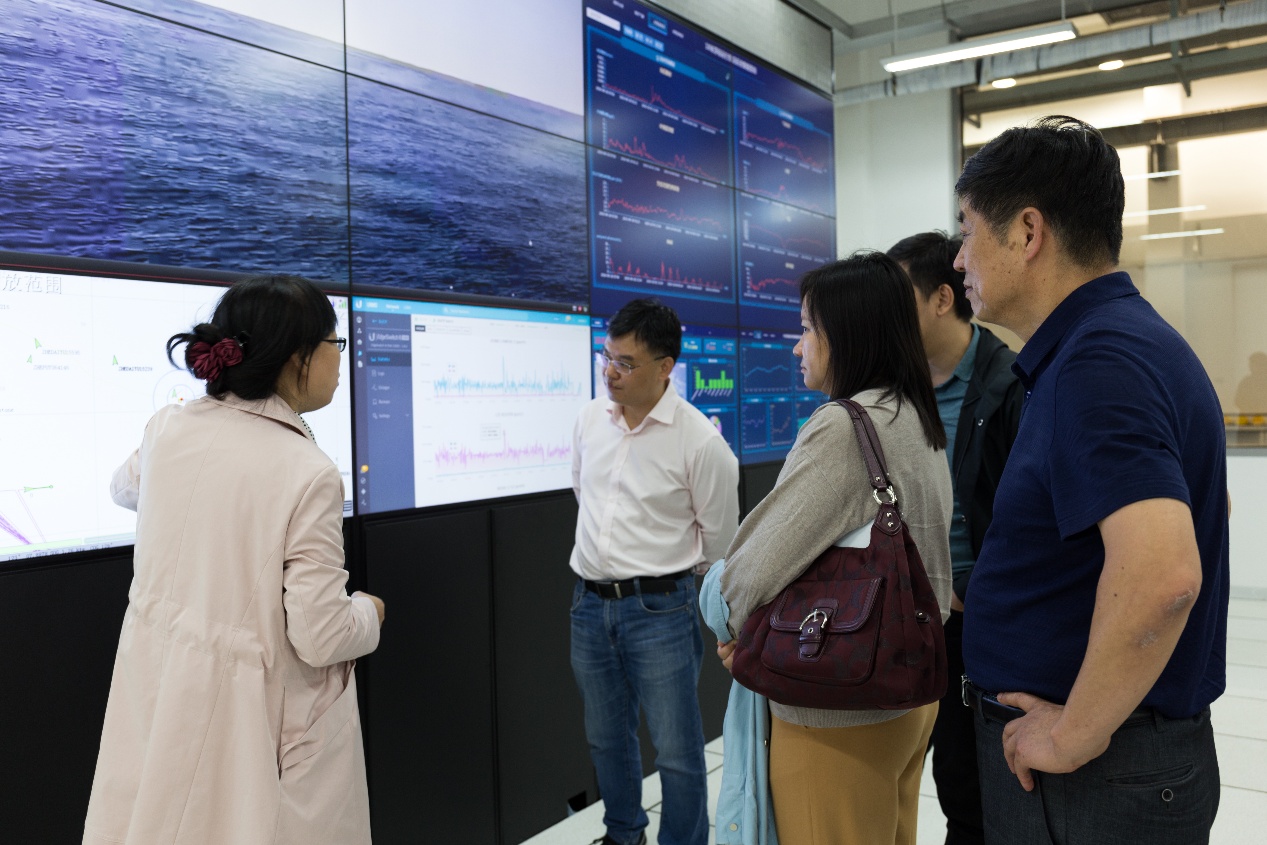专家组在同济大学临港基地现场考察10米试验浮标海上观测数据实时回传