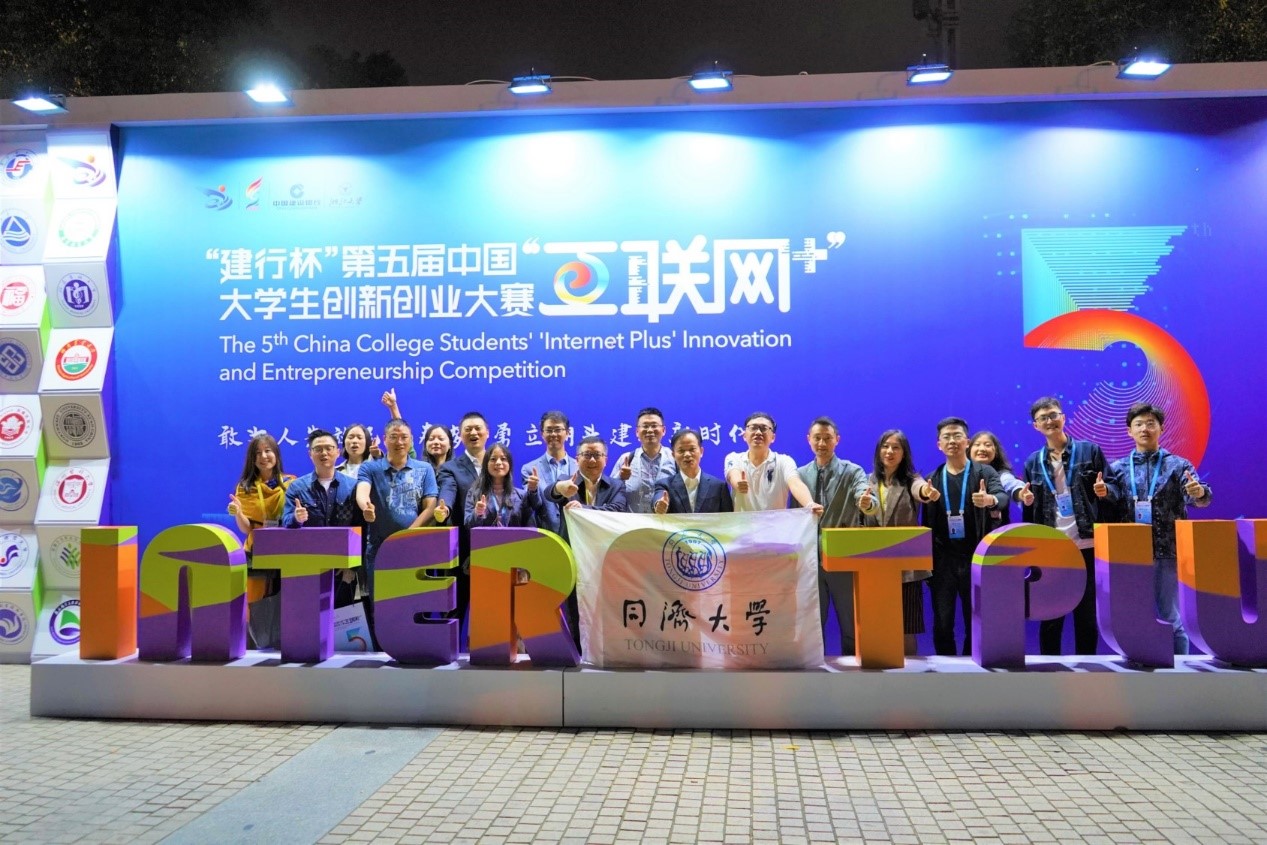 10月12日-15日,第五届中国“互联网+”大学生创新创业大赛全国总决赛在浙江大学举行。同济大学共有4支参赛团队进入全国总决赛,其中3支团队参加“金奖争夺赛”,一支团队参加“铜奖晋银奖复活赛”。最终,同济大学共获得全国总决赛2金2银,获得金奖总数并列全国第五、上海市第一,取得历届最好成绩。其中,我校袁霄团队以小组第2的成绩进入全国前30强。国务院副总理孙春兰在创客秀展示环节亲自视察了我校《工业废水达标处理颠覆者》和《钛石科技》项目团队。在10月14日晚冠军争夺赛中,我校创新创业学院院长钟志华院士以教育部创新创业教育指导委员会主任委员的身份和阿里巴巴王坚、奇虎360周鸿祎等4位知名企业家作为点评嘉宾指导项目。