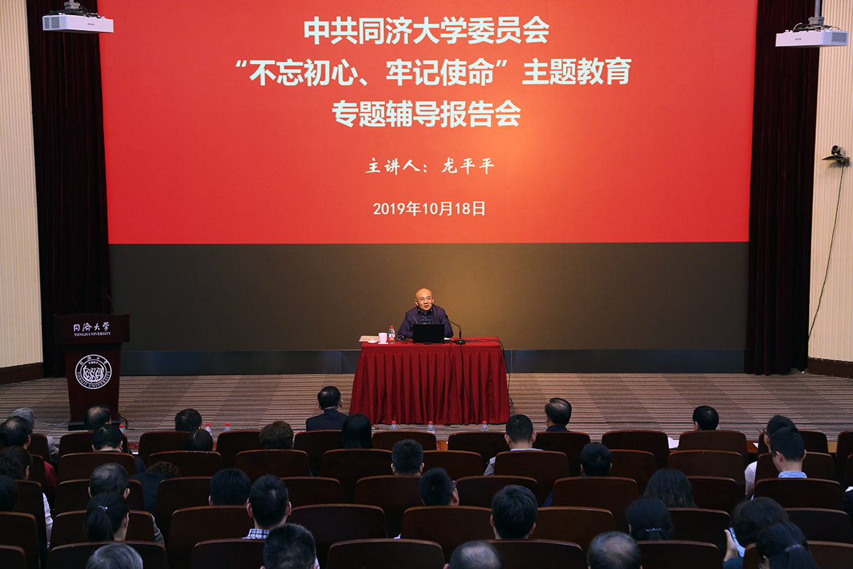 根据中央关于“不忘初心、牢记使命”主题教育的统一部署,为深入学习贯彻习近平新时代中国特色社会主义思想,加强党史、国史教育,深化对党的初心和使命的认识,进一步提升全体党员的政治信念理论素养,10月18日,学校在四平路校区举行专题学习报告会,邀请原中共中央文献研究室副秘书长、中共中央文献研究室第三编研部主任、我校马克思主义学院特聘教授龙平平做题为“伟大复兴的三大里程碑”的专题辅导报告。校党委书记方守恩等校领导班子成员、中层以上干部参加了报告会。报告会由校党委副书记冯身洪主持。