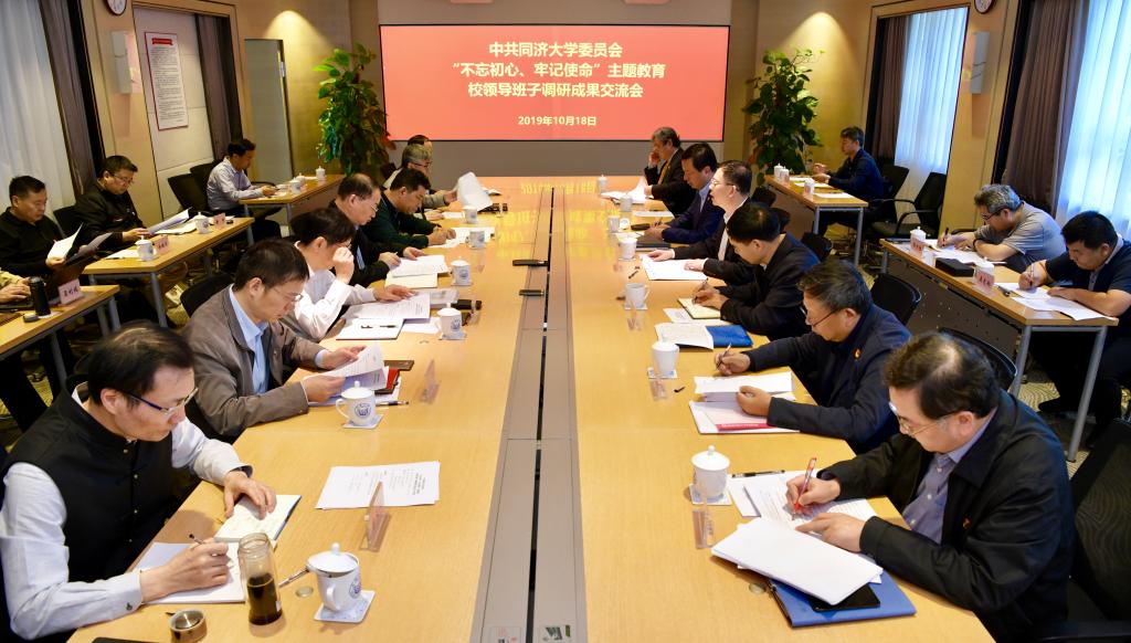 会上,校党委书记方守恩围绕“具有示范引领作用的高校党建工作体系和运行机制研究”、校长陈杰围绕“深化双一流建设的总体思路和具体措施”、常务副校长伍江围绕“推进依法治校、提高管理效能、优化资源配置的对策措施”、副校长江波围绕“一流大学建设背景下的同济文科发展的思路与措施”、副校长蒋昌俊围绕“整体提升学校国际交流水平的对策措施”、副校长吴志强围绕“服务‘长三角一体化’的同济产学研创新模式调研与再提升”、校党委副书记徐建平围绕“深化‘三全育人’综合改革的对策措施”、副校长吕培明围绕“与一流大学相匹配的各类人才队伍建设的对策措施”、校党委副书记吴广明围绕“加强意识形态管理的对策措施”、副校长顾祥林围绕“促进基础研究和学科交叉的对策措施”、校党委副书记方平围绕“巡察监督与纪律监督相结合,推动全面从严治党向纵深发展”、校党委副书记冯身洪围绕“改进机关作风提升服务效能的对策措施”、副校长陈义汉围绕“振兴同济医学的方向与路径”等课题分别交流了调研的基本情况、发现的问题和整改的基本思路与措施。