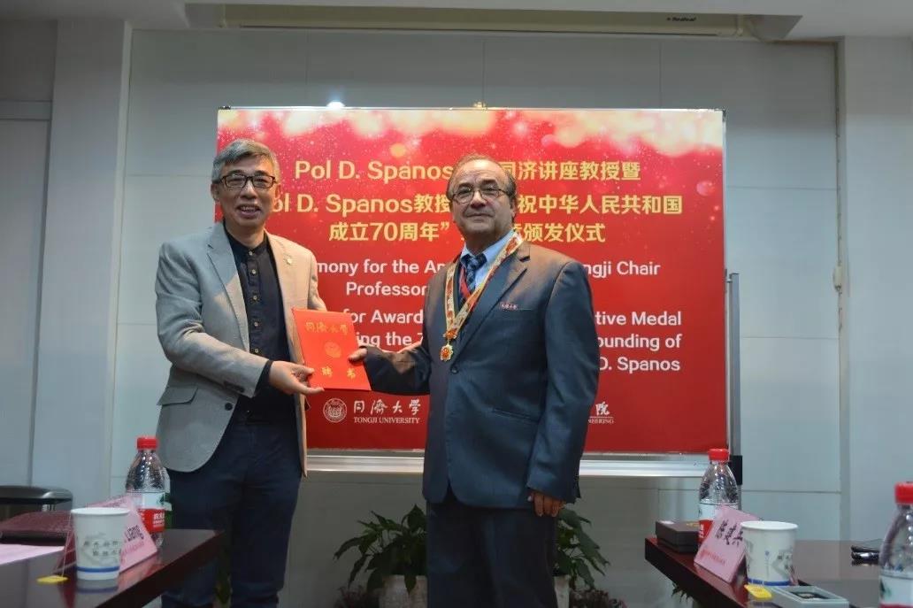 “感谢同济大学对我与同济大学学者之间的国际交流与合作研究所给予的长期支持,我为与同济大学国际一流学者开展高水平合作研究取得的成果感到骄傲。”Spanos在纪念章颁发仪式上这样说。