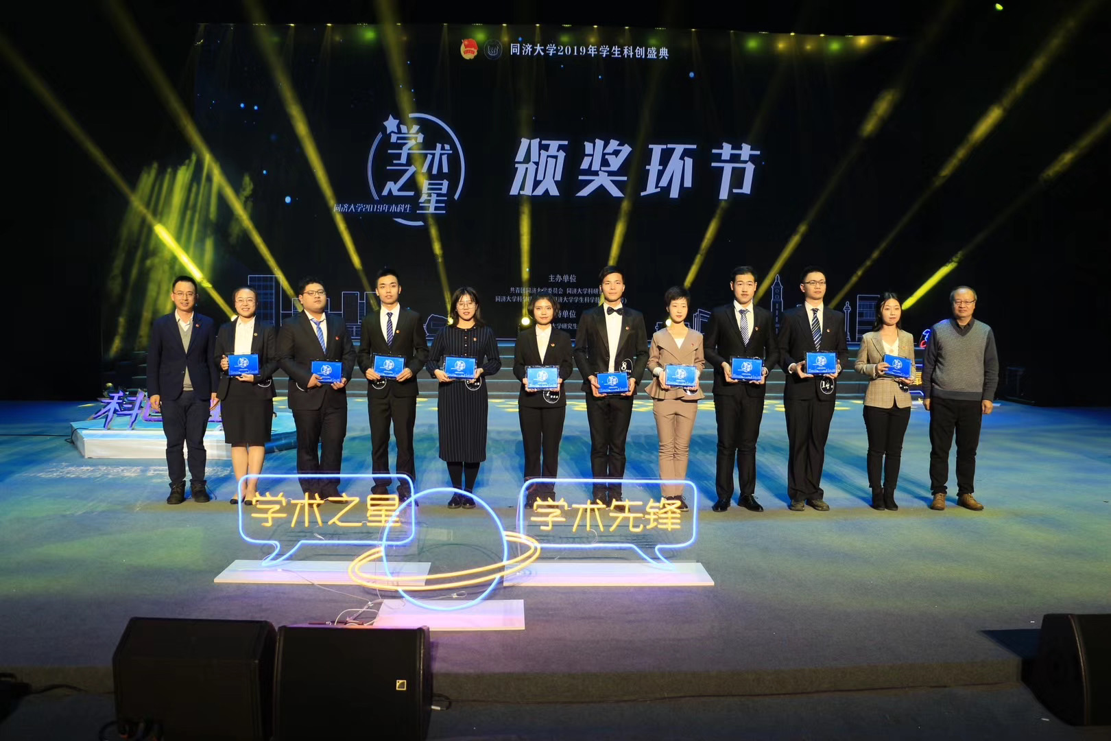 本科生“学术之星”选拔自2019年9月开始,经过自主报名、院系审核、院系推荐,20个专业的35名学生进入复评,候选人累计获得正交异性钢箱梁过焊孔裂纹长期监测装置、全电动自动泊车机器人等10余项专利;在《ACS Applied Materials & Interfaces》《IEEE ROBIO 2018 》《International Journal of Refrigeration 》 《IEEE Access 》等顶级刊物上发表论文50余篇;在“挑战杯”“知行杯”、美国大学生数学建模竞赛等海内外大赛上共斩获168项奖项,累计数十万人为学生投票,摇旗呐喊。终审现场,杰青、学科带头人坐镇现场,针砭时弊、为学生成长建言献策。候选人们凭借卓越的科创成果、强烈的社会责任感、精彩的现场表现,获得现场师生的阵阵掌声。最终,十位同学获评“学术之星”称号,四位同学获评“学术之星”提名奖。科创盛典上,还对同济大学第13届研究生“学术先锋”进行了表彰。
